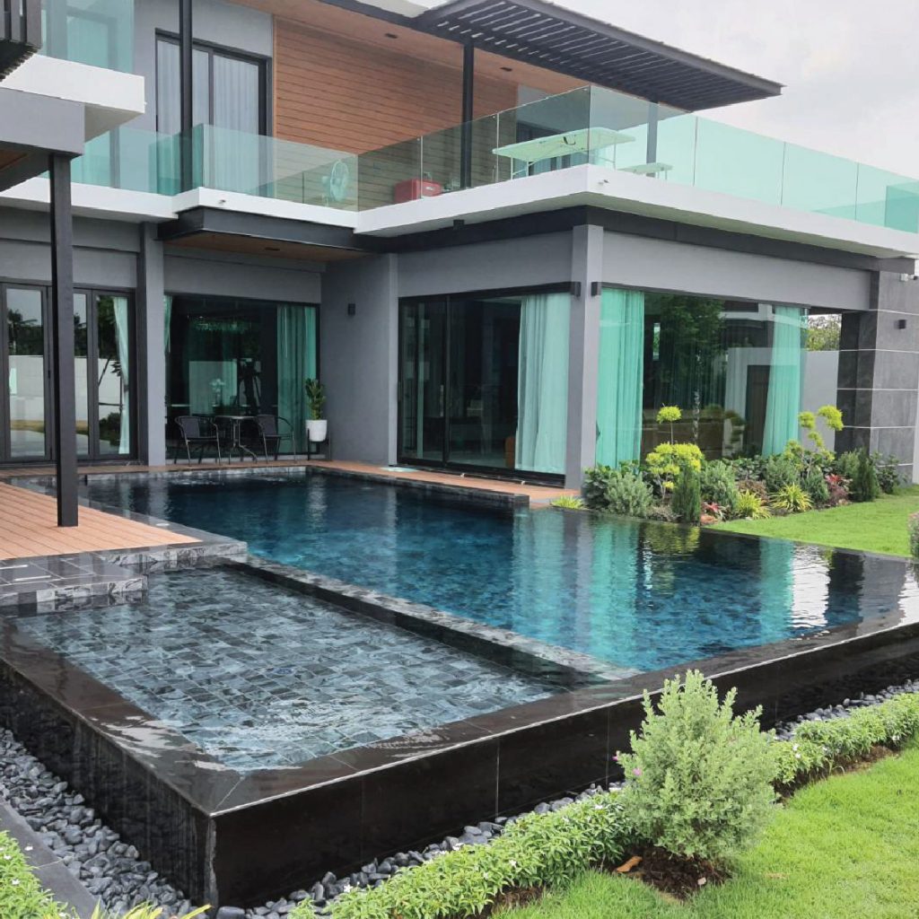 Swimming pools are man-made water sources for swimming or recreation. Can be built deep into the ground or above the ground The pool may be decorated to be in the desired shape or size. And constructed with many materials such as concrete, metal, plastic or fiberglass And most importantly, if wanting a beautiful natural swimming pool, must be decorated with stones that come from nature